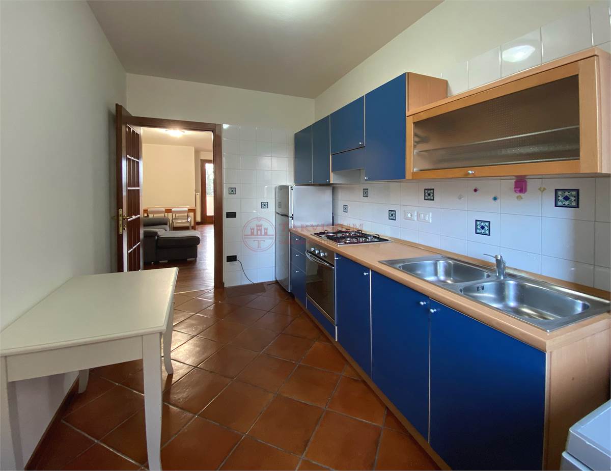 Luminoso bicamere semiarredato, costituito da: soggiorno, cucina separata abitabile, 2 camere ampie, 2 bagni (uno con vasca finestrato e uno con doccia), 2 terrazze (di cui una abitabile) entrambe con bella vista sul verde del piccolo parco antistante. Posto al 1° piano è servito da ascensore, dotato di garage di proprietà di circa 19mq al piano interrato e di numerosi posti auto liberi fronte casa.