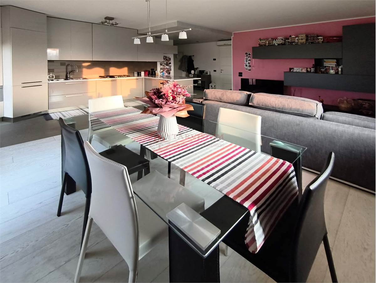 Entrando dall'ingresso, con comodo ripostiglio, si è accolti dall'ampia e luminosissima zona giorno orientata a sud/ovest e costituita