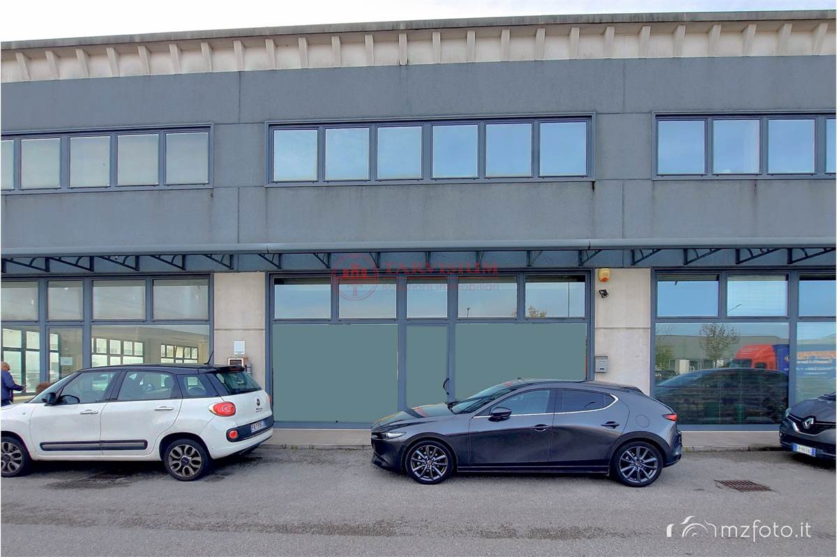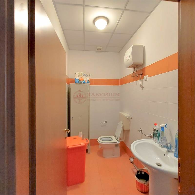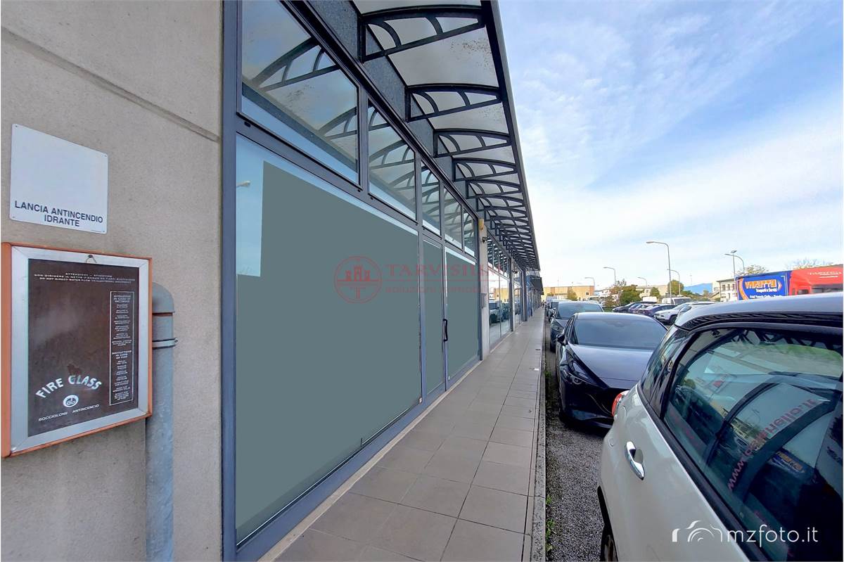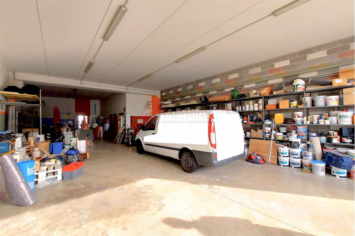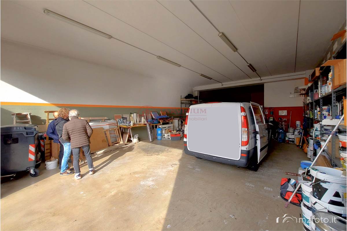 locale fronte strada di circa 40 mq con ampie vetrine, adibito a parte espositiva materiali, negozio, ampio locale adibito a magazzino di circa 170 mq con accesso dal retro con grande portone carraio scorrevole di 4,5 mt per 3,6 di altezza, bagno e ripostiglio.