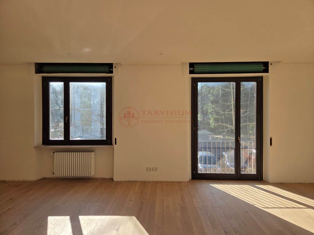 Treviso: in zona Santa Maria del Rovere appartamento ristrutturato di ampia metratura posto al primo piano di piccola palazzina. L'appartamento è composto da ingresso, cucina separata con veranda coperta, ampio e luminoso soggiorno con terrazzino e affaccio sul verde. Corridoio, tre camere grandi, due bagni entrambi con finestra, dal corridoio si accede ad una scala a chiocciola in legno che collega l'appartamento con il piano terra dove troviamo due stanze con bagno-lavanderia per un totale di circa 30 mq; Giardino comune piantumato con possibilità di parcheggio, predisposizione aria condizionata, cassaforte e tapparelle elettriche. Referente: Luca Mascherin 3393222190;