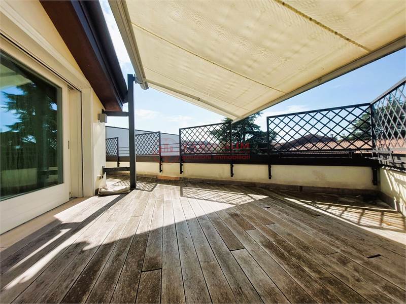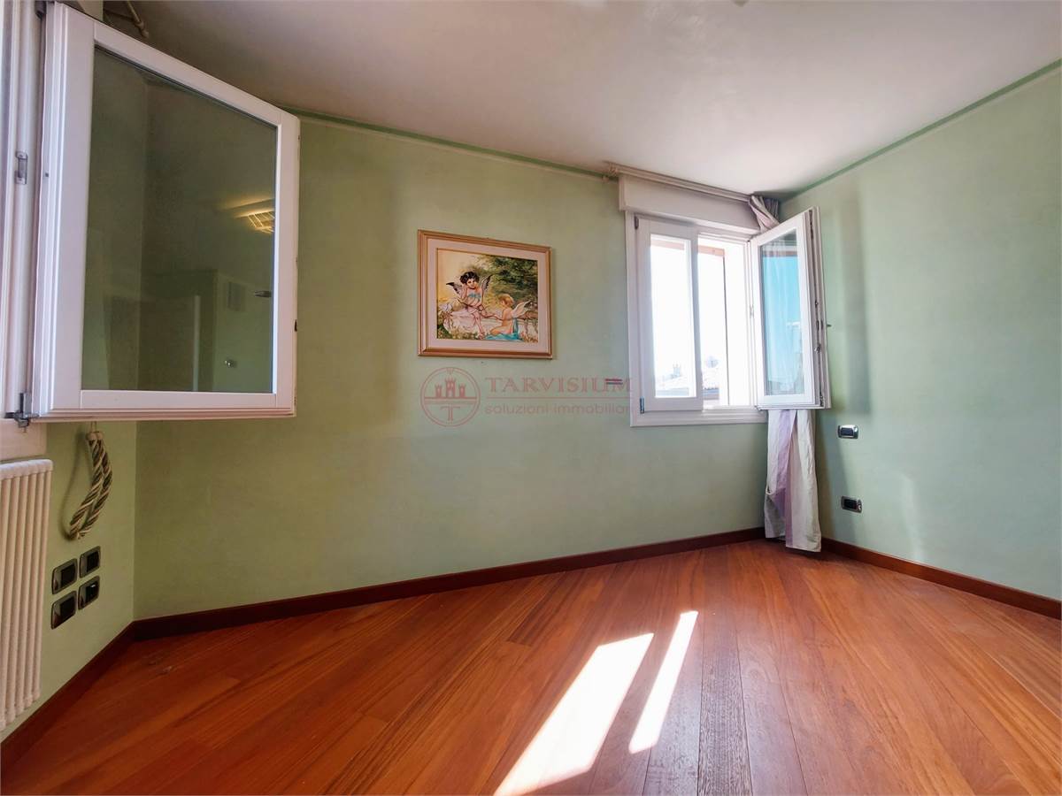 L'esposizione su quattro lati offre diverse viste panoramiche sui tetti della città di Treviso. Terrazzo di circa 40 mq, al quale si accede dalla zona giorno, tramite un comodo serramento scorrevole.