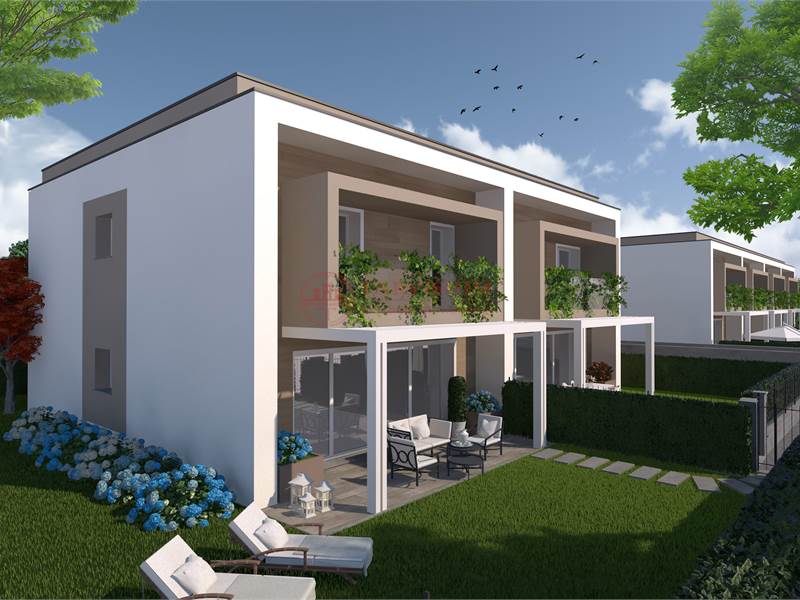 In curato e moderno complesso in fase di costruzione (consegna inizio 2027) disponibili 2 bifamiliari disposte su due livelli fuori terra, composte da: ingresso, ampia e luminosa zona giorno/pranzo da 40mq esposta a sud, bagno e garage al piano terra; 3 camere (1 matrimoniale e 2 singole), bagno e terrazza al piano primo.