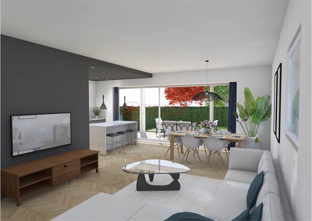 Dalla zona giorno, tramite grande vetrata scorrevole, si accede allo scoperto privato, ideale per i giochi dei bambini o le cene all'aperto con gli amici.
