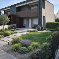 Dal cancello pedonale indipendente si entra nel giardino - un'area verde di circa 180 mq che circonda l'intero appartamento - attraversato il quale si è accolti dal portico lastricato di oltre 13mq, una zona filtro tra esterno ed interno, che consente di soggiornare comodamente all'aria aperta, dotata tra l'altro di un comodo locate tecnico/ripostiglio già predisposto per ospitare all'occorrenza lavatrice e asciugatrice.