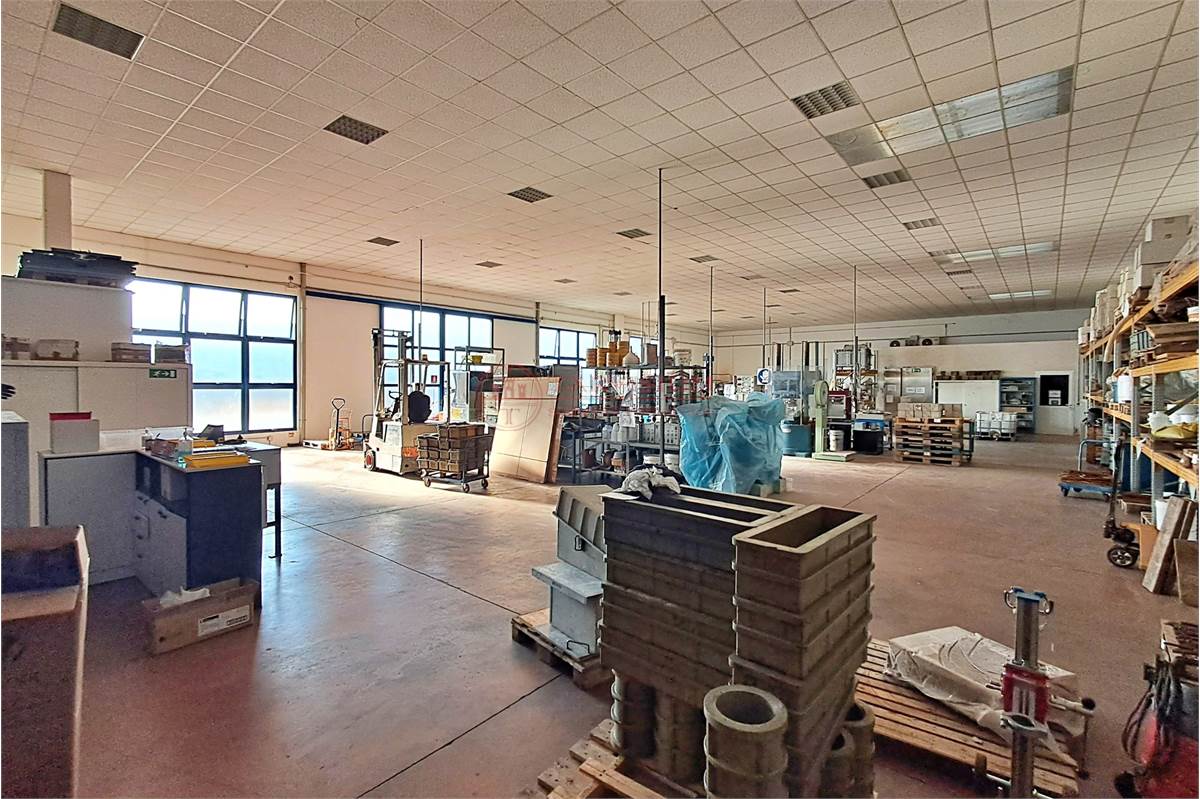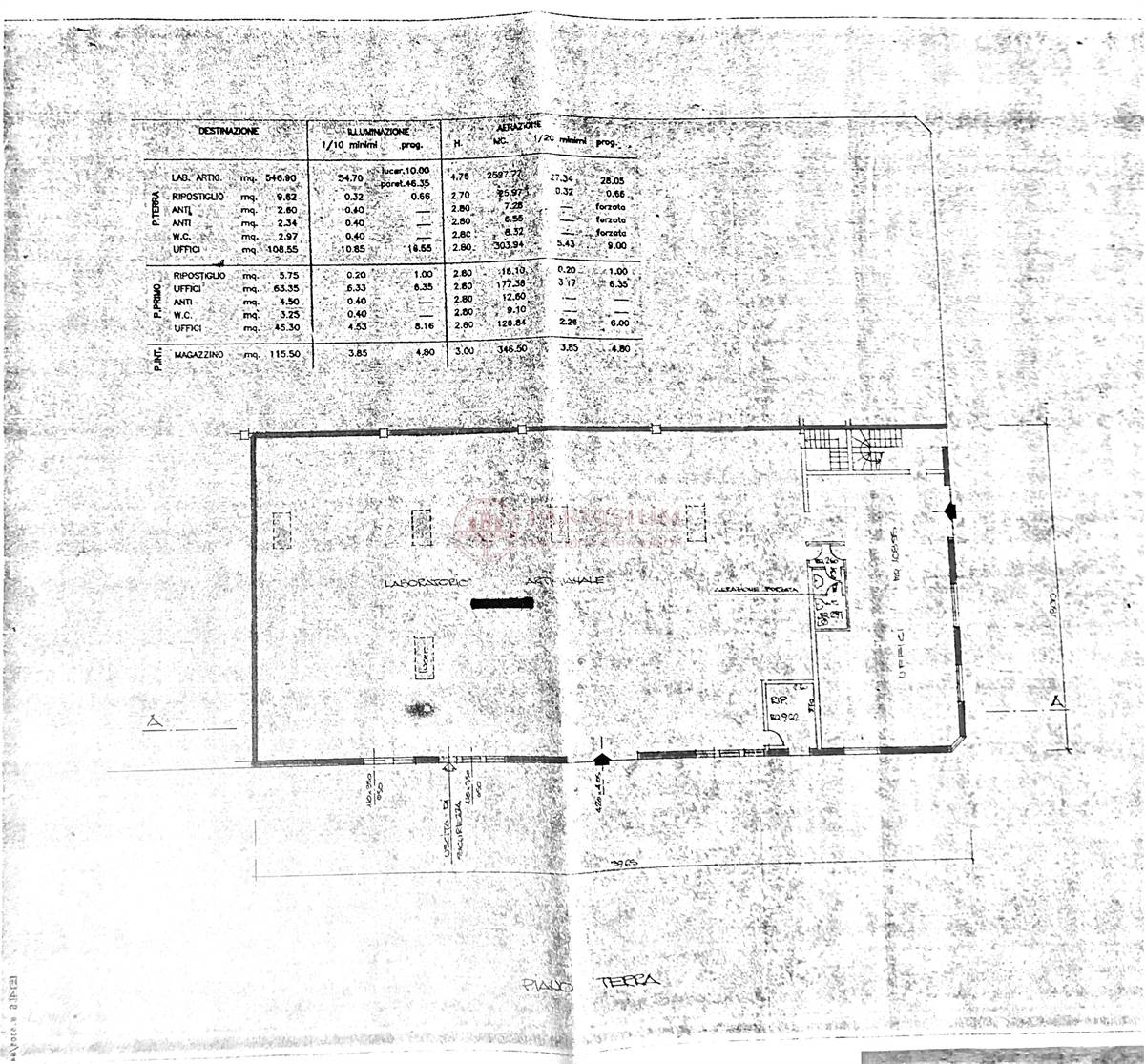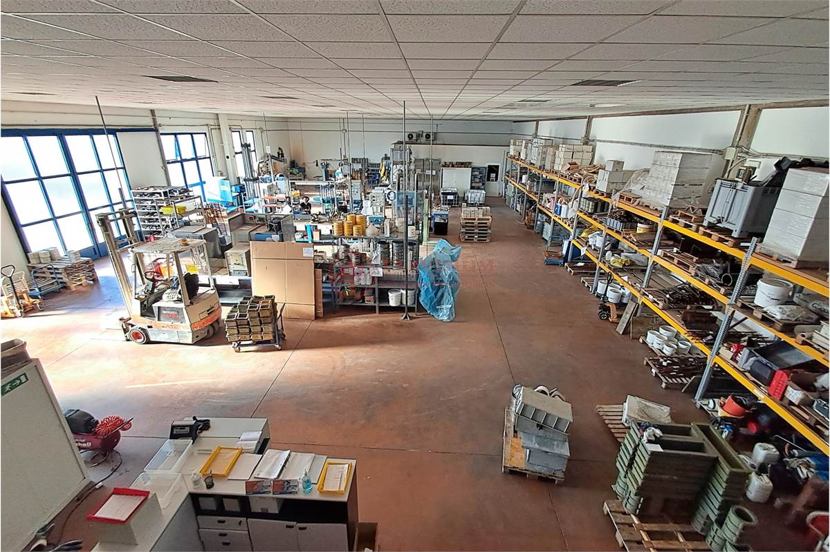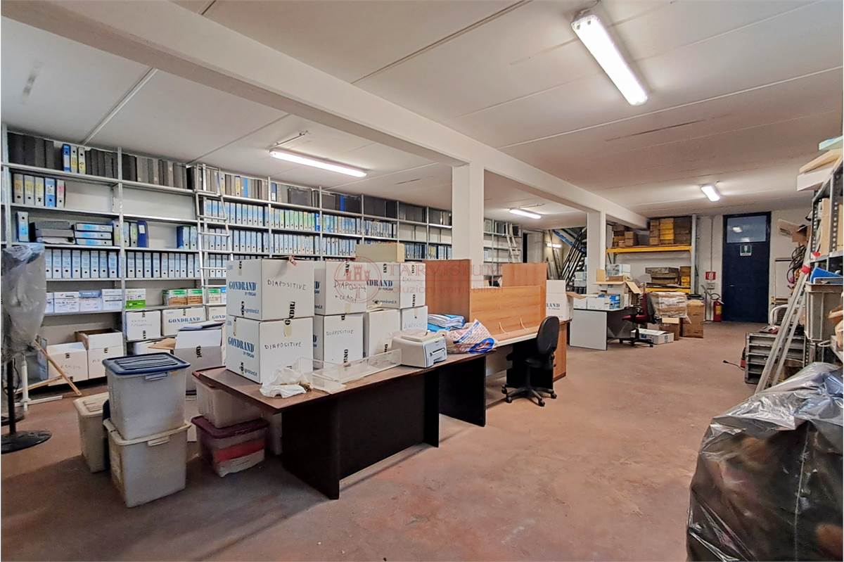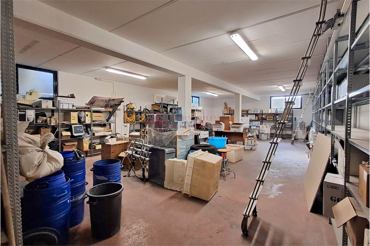 Interessante capannone di 975 mq commerciali costituito da 564,3 mq lordi di magazzino al piano terra con altezza 5,00 mt, 147,4 mq lordi di uffici al piano terra con altezza 2,80 mt, 147,4 mq lordi di uffici al piano primo con altezza 2,90 mt e 147,7 mq lordi di magazzino al piano interrato con altezza 3,35 mt.