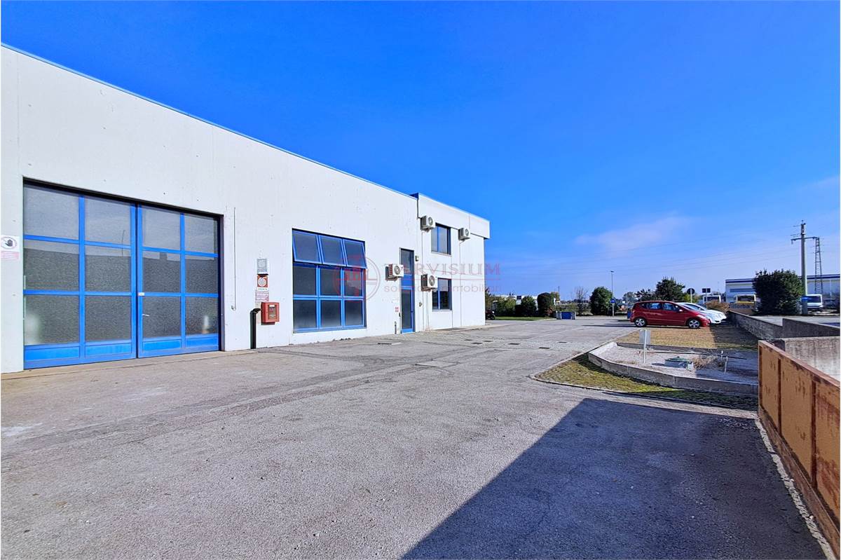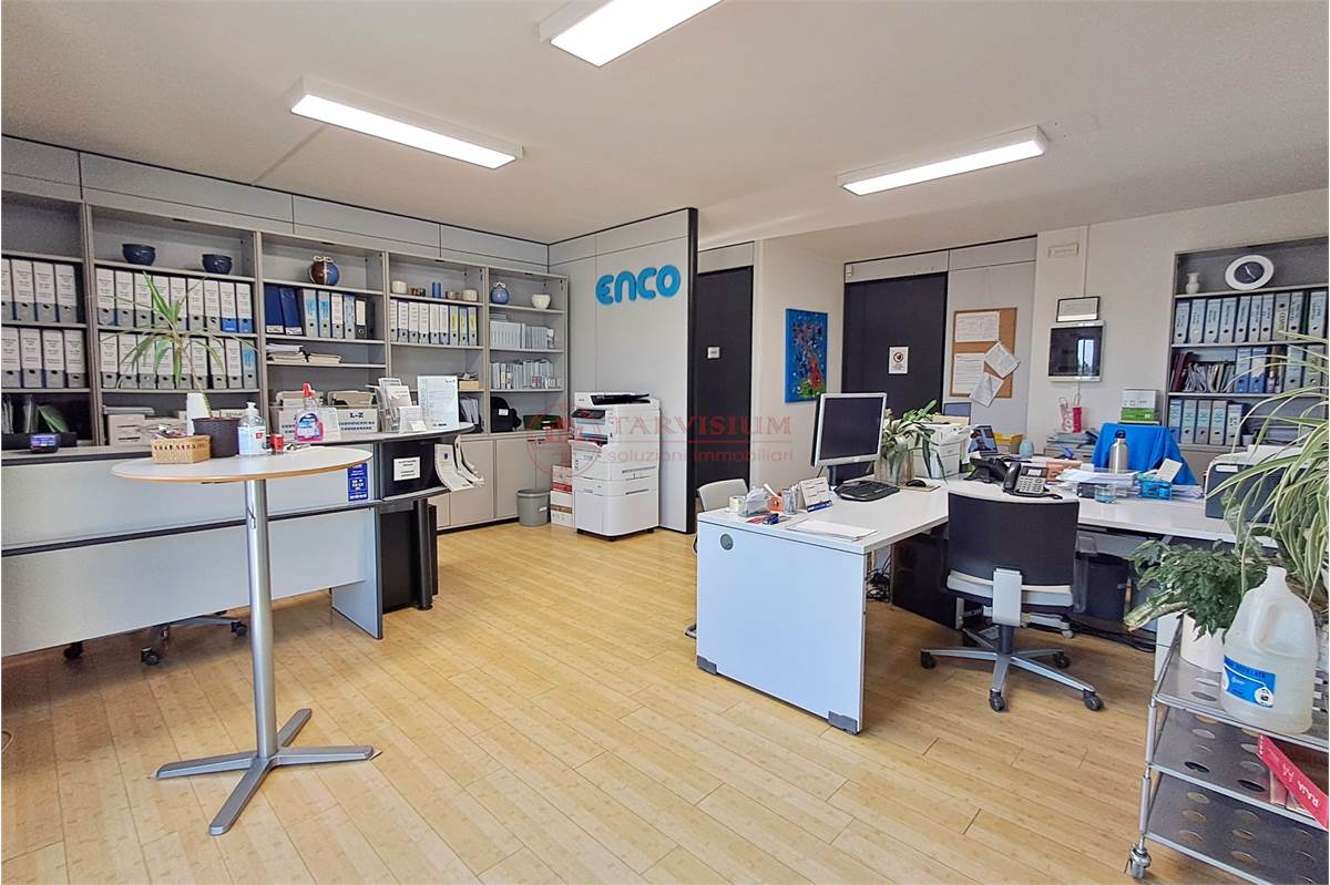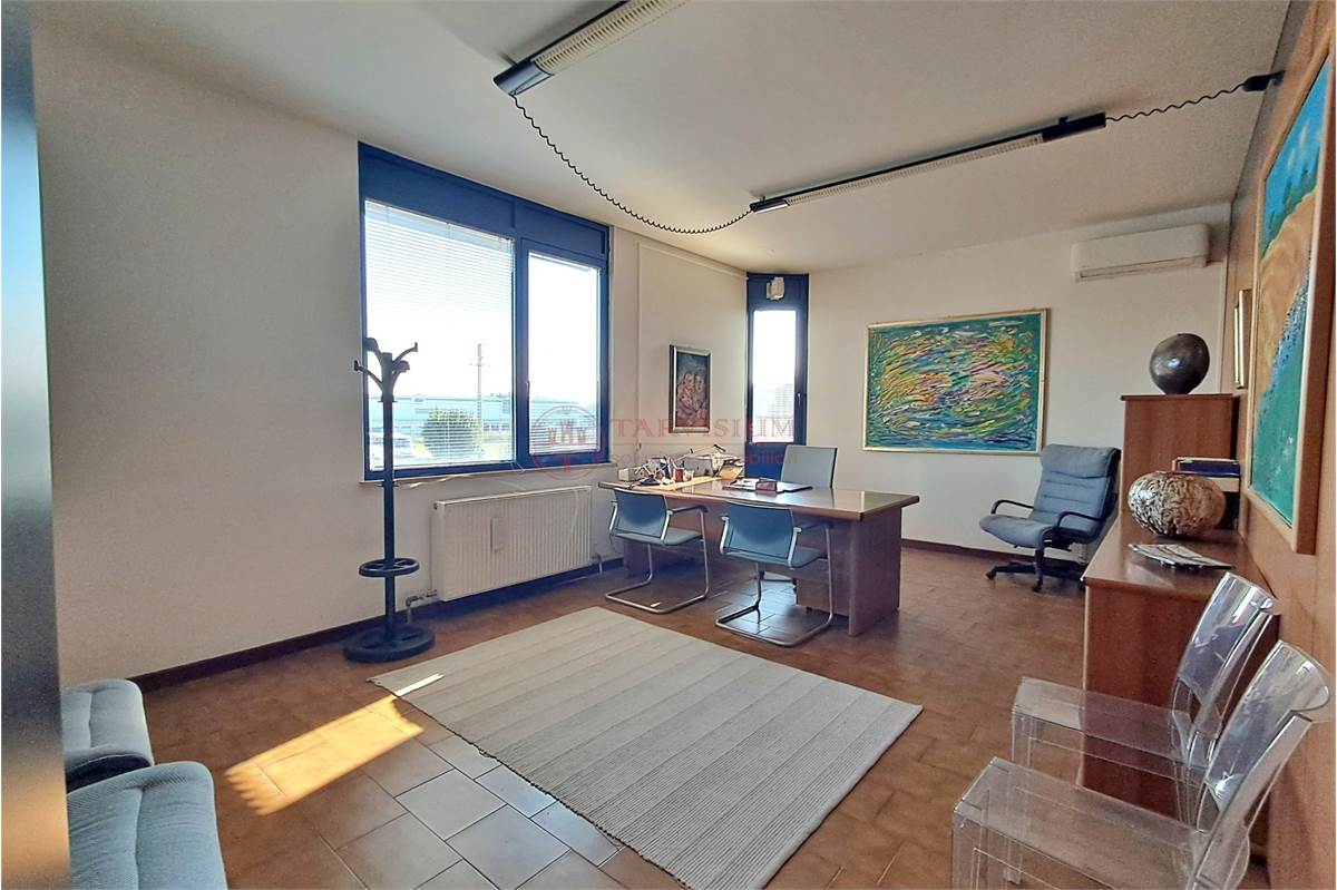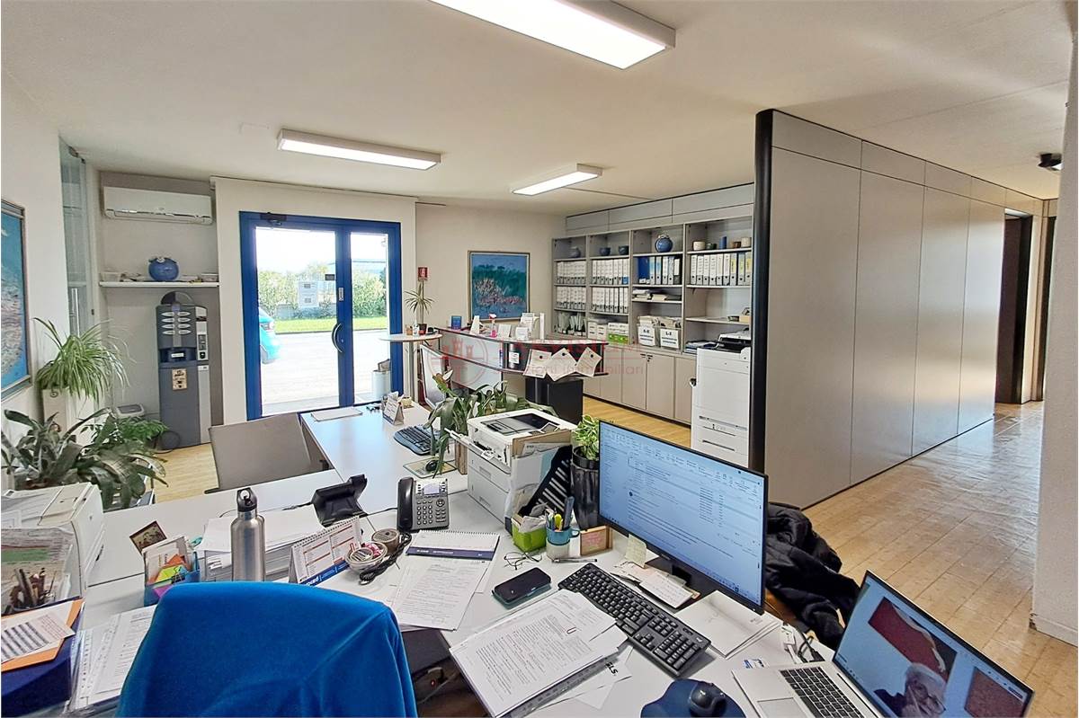 Interessante capannone di 975 mq commerciali costituito da 564,3 mq lordi di magazzino al piano terra con altezza 5,00 mt, 147,4 mq lordi di uffici al piano terra con altezza 2,80 mt, 147,4 mq lordi di uffici al piano primo con altezza 2,90 mt e 147,7 mq lordi di magazzino al piano interrato con altezza 3,35 mt.