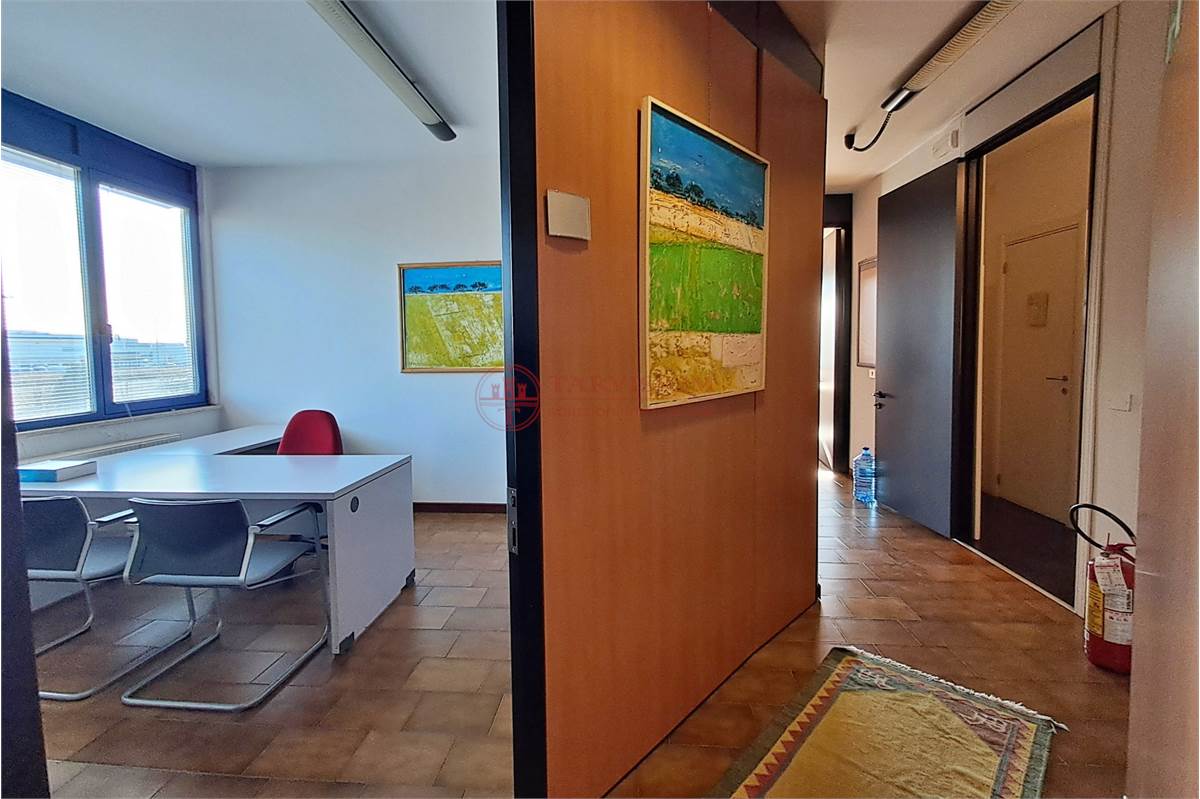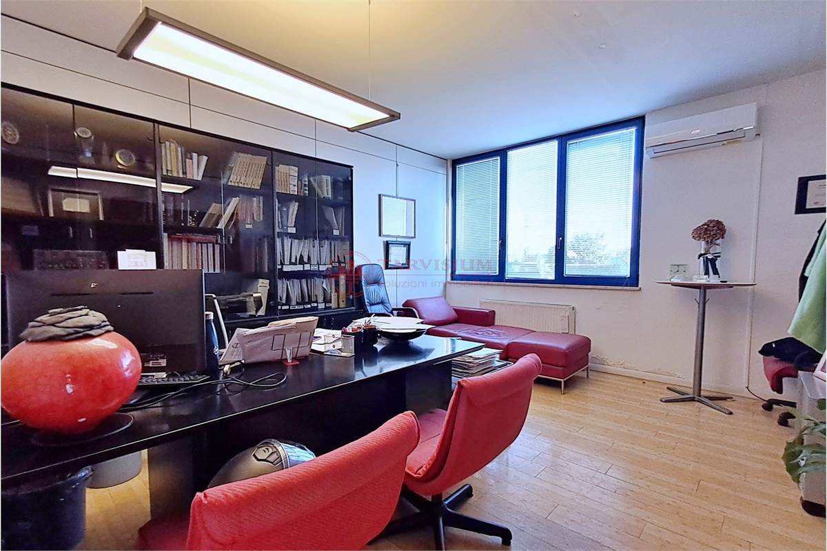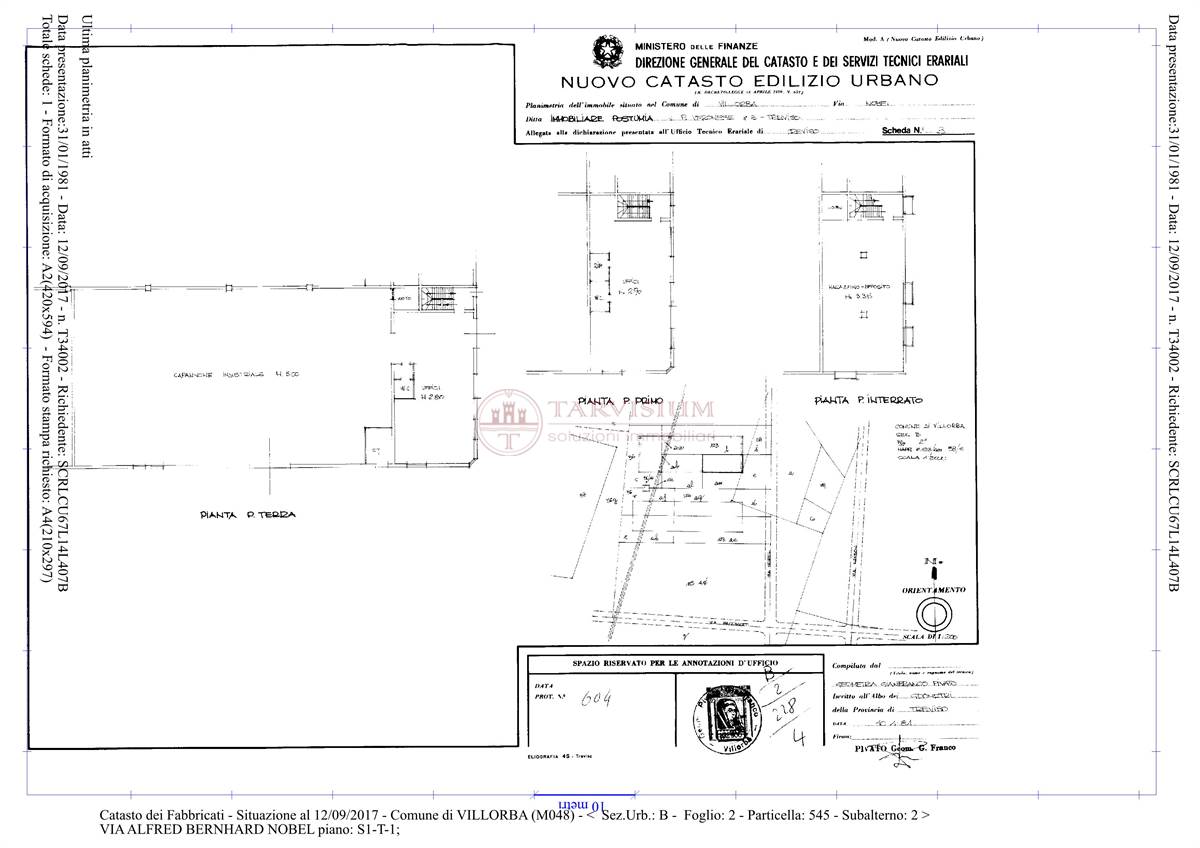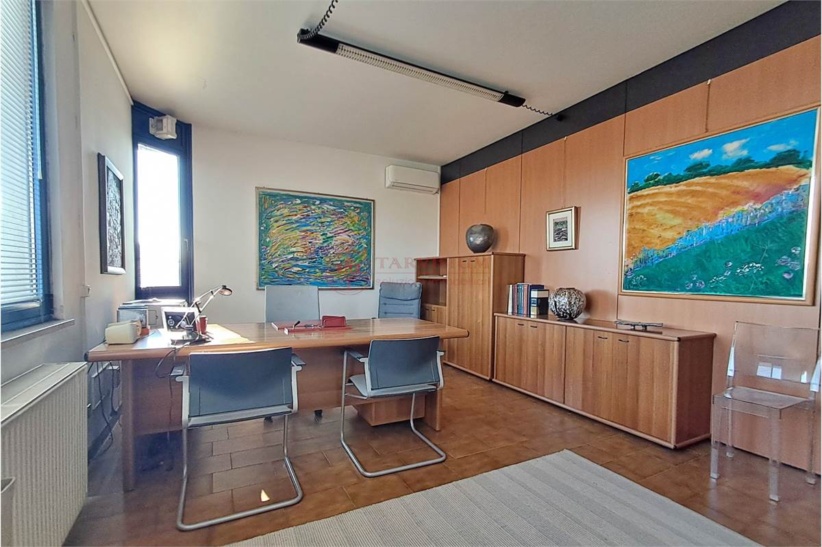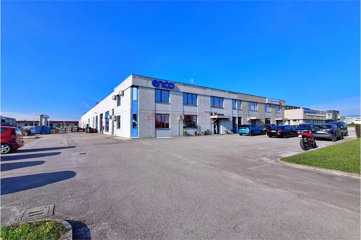 Interessante capannone di 975 mq commerciali costituito da 564,3 mq lordi di magazzino al piano terra con altezza 5,00 mt, 147,4 mq lordi di uffici al piano terra con altezza 2,80 mt, 147,4 mq lordi di uffici al piano primo con altezza 2,90 mt e 147,7 mq lordi di magazzino al piano interrato con altezza 3,35 mt.