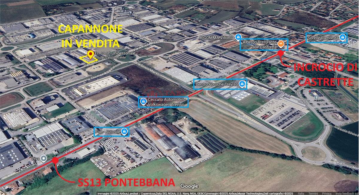 Ottima posizione, facilmente accessibile dalla Strada Statale 13 Pontebbana all'altezza del nuovo concessionario Porsche di Treviso, a 3,5 km dal casello della SPV Pedemontana ed a 5,6 km dal casello autostradale di Treviso Nord.
