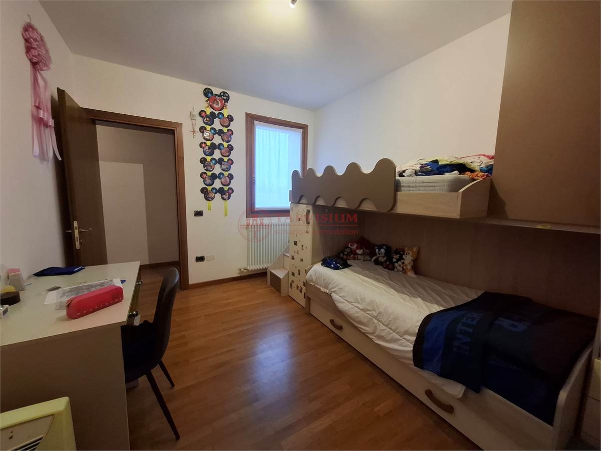 Proseguendo verso la zona notte, sempre al piano terra, troviamo un disimpegno che distribuisce gli ambienti. La camera matrimoniale dispone di un bagno finestrato dedicato. Accanto, una spaziosa camera singola si presta perfettamente come stanza per figli, ospiti o studio. Sullo stesso livello completano la disposizione un secondo bagno finestrato e un pratico magazzino/lavanderia con centrale termica.