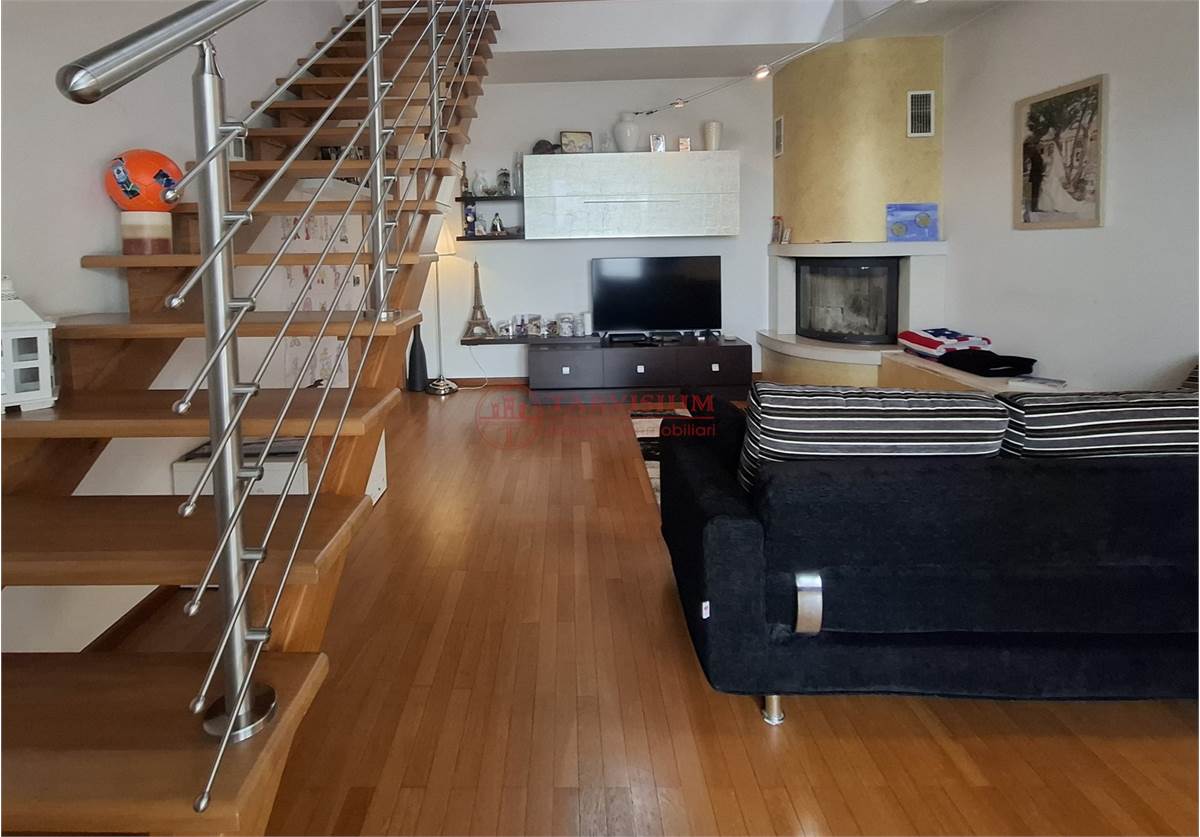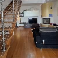 Entrando, si apre davanti a noi una luminosa zona giorno open space, dove soggiorno, cucina e sala da pranzo convivono in un unico ambiente arioso e accogliente. Lo sguardo viene subito catturato dal tetto travato a vista e dal soppalco che si affaccia dall’alto, creando un suggestivo gioco di volumi. Il soggiorno, caldo e avvolgente, è impreziosito dal caminetto, perfetto per rendere ancora più piacevoli le serate in casa.